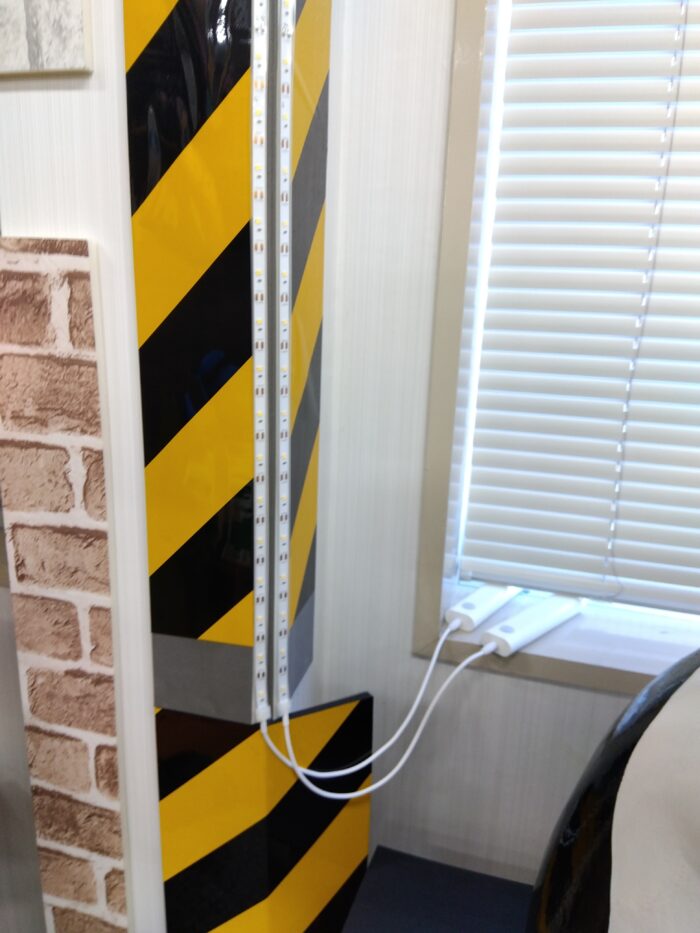 L字コーナーガードとしてポリエチレンスポンジのVカット品+黄黒のシート貼り合わせ |
